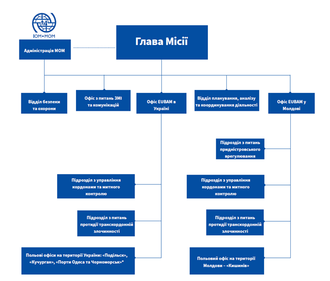 Штаб-квартира Місії знаходиться в місті Одеса (Україна). Місія має Представництва в обох країнах (в Кишиневі, Молдова та Одесі, Україна) та ключові робочі локації на кордоні обох держав. Загалом в Місії працюють понад 80 осіб, серед яких є експерти з 9 різних держав-членів Європейсього Союзу.
